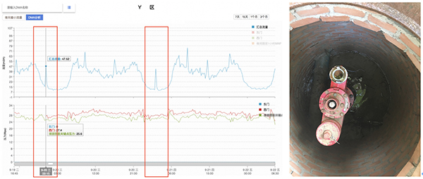 2017年8月,基于DMA示范区在LeakView®系统上的数据分析,水联网配合水司对Y区进行了现场复查工作,在复查工作中发现疑似漏水点。随即水司对已探测到的漏点,进行修漏工作,通过修复后日水量节约120立方米,年节水量约为4.4万立方米。